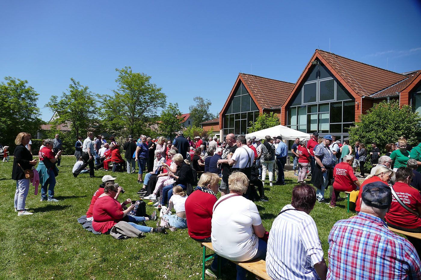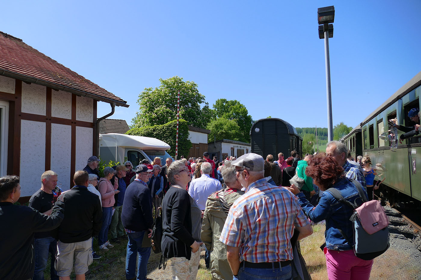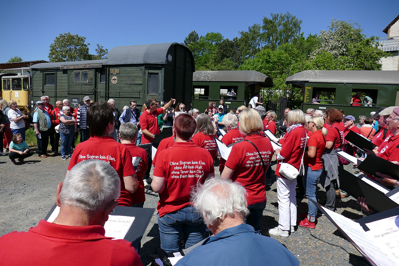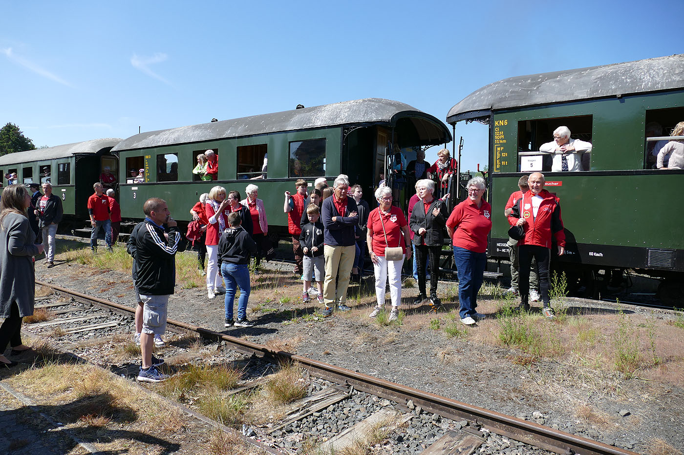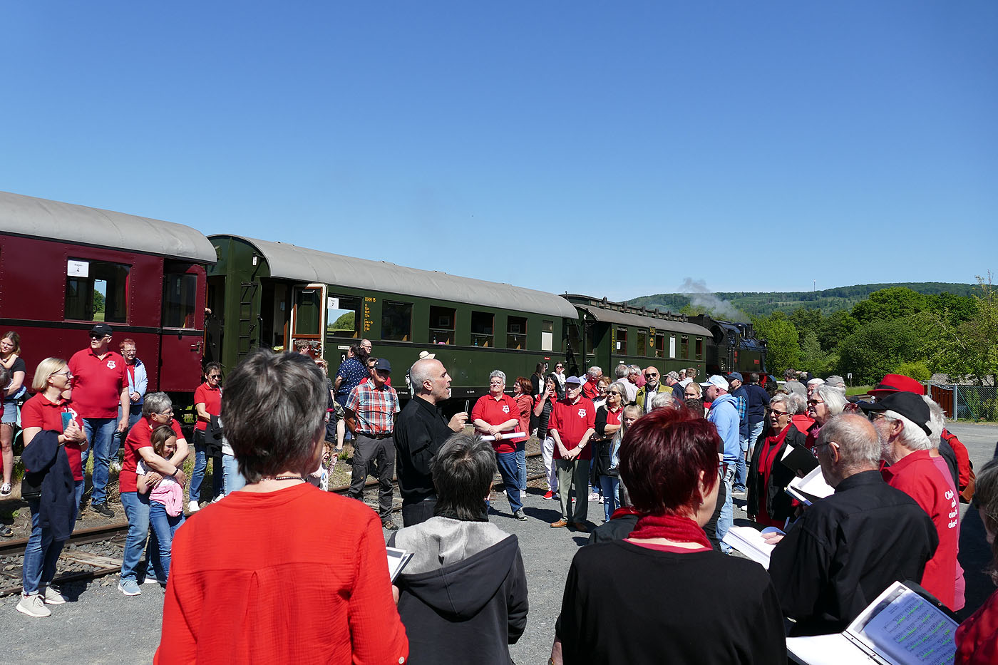 Der Einladung des 150-jährigen Jubiläums des FSK Hoof folgten die Sänger des BGV 1862 Naumburg gern. So traf man sich um 10:00 Uhr am Vereinslokal um in Fahrgemeinschaften nach Elgerhausen zu fahren. Dort stieg man, nachdem der Gesangverein aus Martinhagen eineige Lieder gesungen hatte, in den Hesencourrier ein. Der nächste Halt war dann Hoof, wo der gastgebende Verein seine Liederv vortrug. Am Naumburger Bahnhof angekommen gab die Combo Großenritte/Elgershausen, die schon während der Zugfahrt einige Lieder spielte, noch eine Liedeinlage, bevor es zum Kurpark am Haus des Gastes ging. Dort konnte man sich, von Mitgliedern des FSK Hoof bewirtet, stärken.